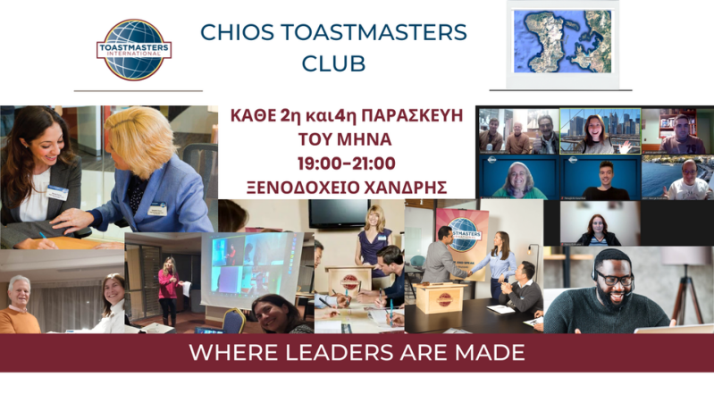At Chios Toastmasters Club, we are dedicated to helping individuals improve their public speaking and leadership skills through the proven methods of Toastmasters International.